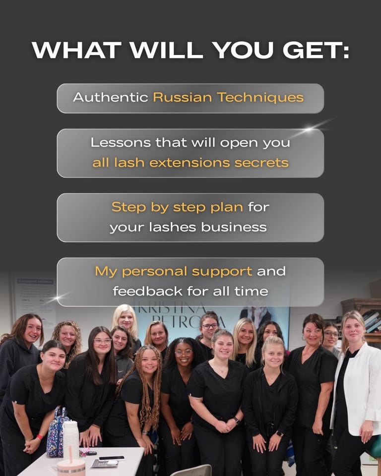 My eyelash extension classes are built from my heart to help you thrive as a lash artist. With elite techniques from Russia and Europe, I’m dedicated to guiding artists of all levels to master their craft, boost confidence, and achieve success in the lash industry. Join me and let’s create something extraordinary together!