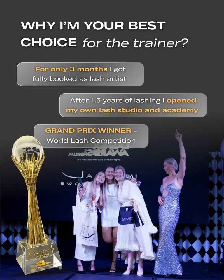 Welcome to the world of luxury lashes with Kristina Petrova! I’m a Grand Prix winner of the 2025 World Lash Competition in Italy, where I outshone talents from 23 countries. With 3.5 years of expertise in the lash industry, I’ve established myself as the world’s premier lash artist, securing 1st place in the expert/trainer category in the prestigious Celebrity nomination. My deep knowledge and passion for lashes ensure every set I create is a masterpiece of beauty and health.